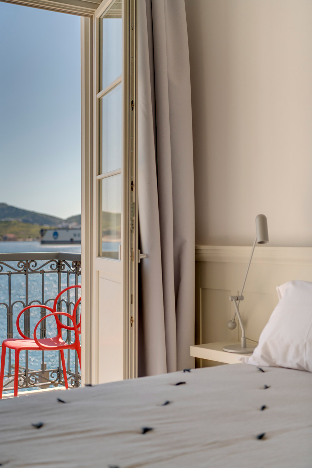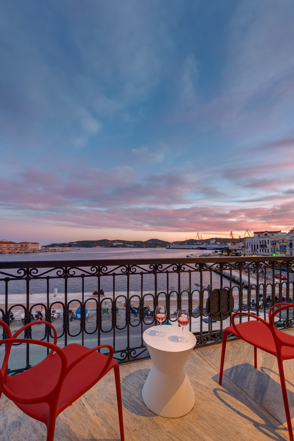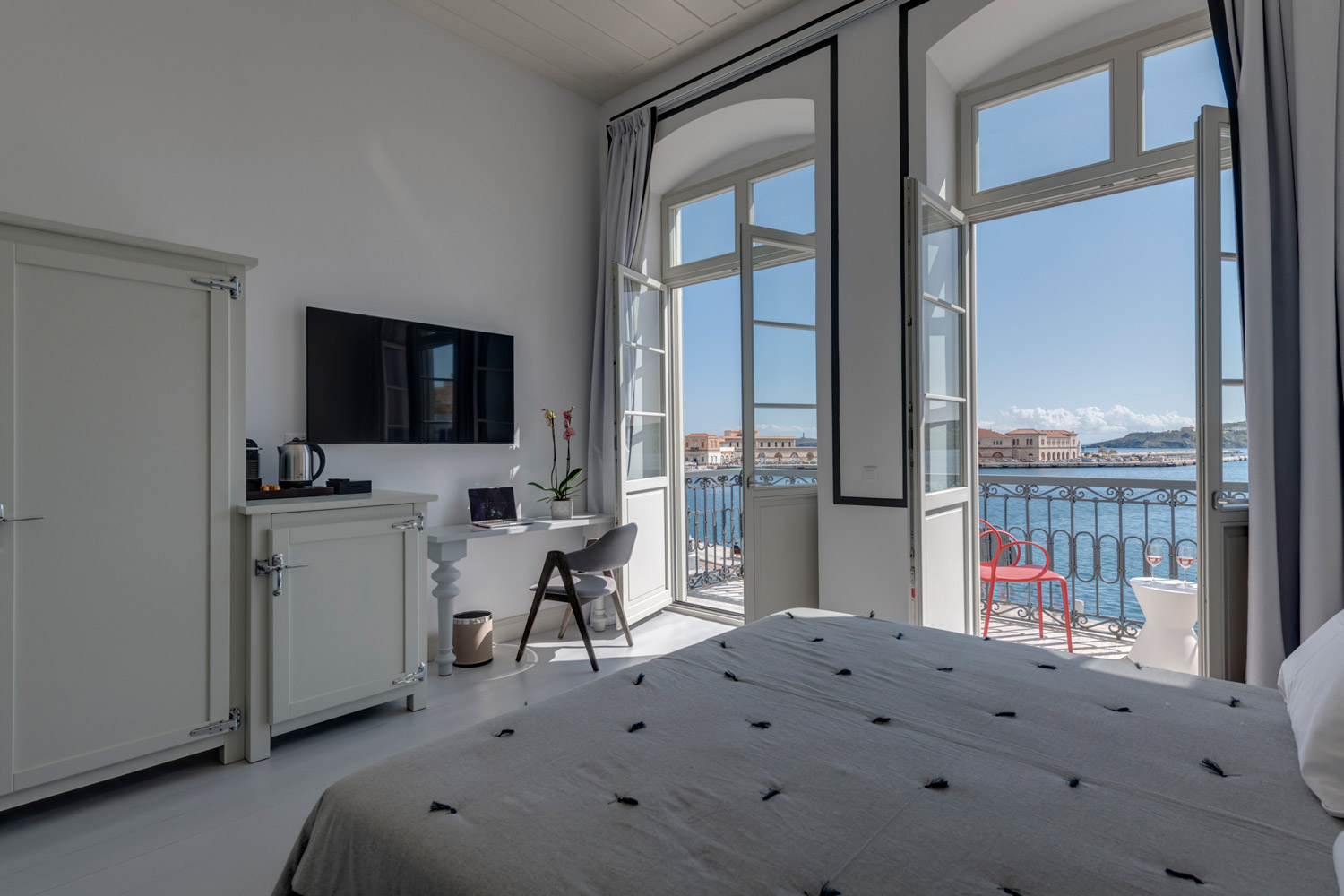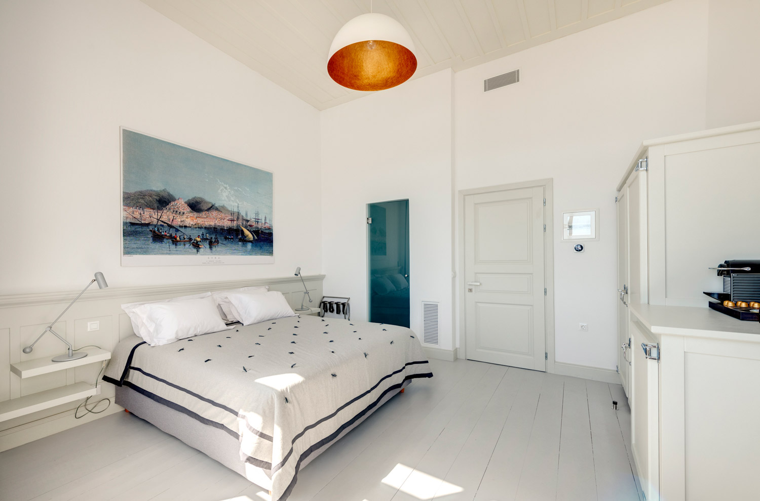 Ascend to the second floor and discover the epitome of coastal luxury. The Deluxe room with balcony features a balcony overlooking the sea, inviting guests to immerse themselves in the breathtaking vistas and gentle sea breeze. With its elegant décor and attention to detail, including a comfortable double bed, the room offers a true haven of relaxation. Our suites in Ermoupolis, Syros, provide an unmatched experience of comfort and sophistication.