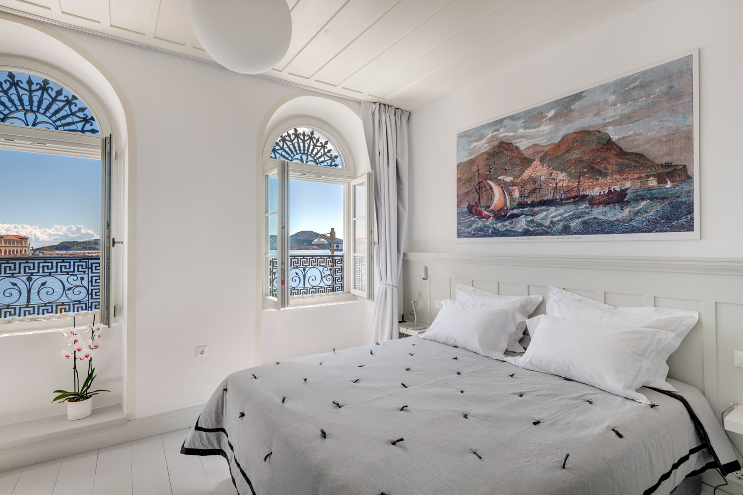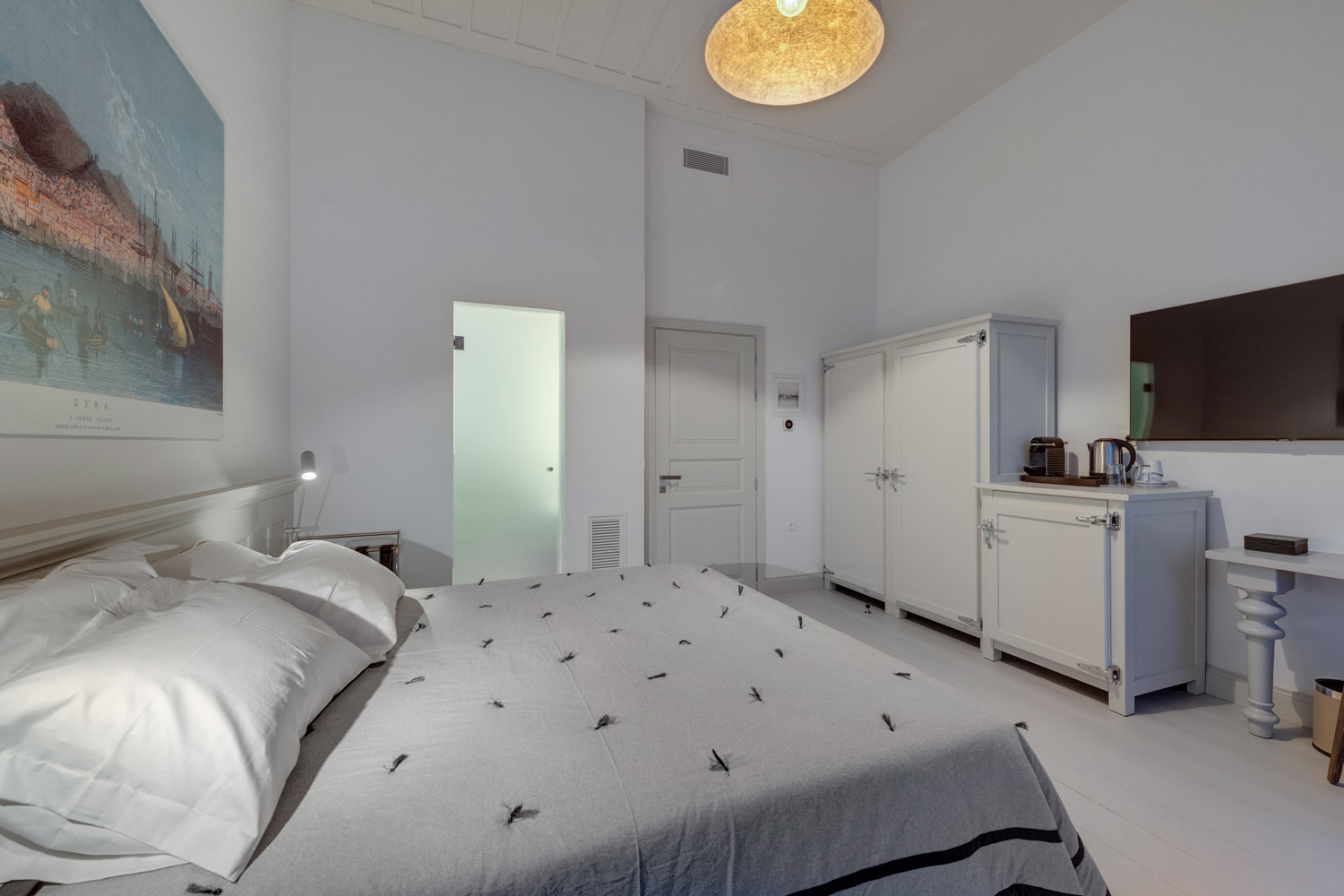 Located on the first floor, it boasts panoramic sea views, framing the azure waters like a living masterpiece. As one of the finest luxury suites in Syros, Greece, this accommodation features a double bed and carefully chosen furnishings, offering a tranquil retreat for discerning travellers who appreciate the beauty of Syros, Ermoupoli, Greece.