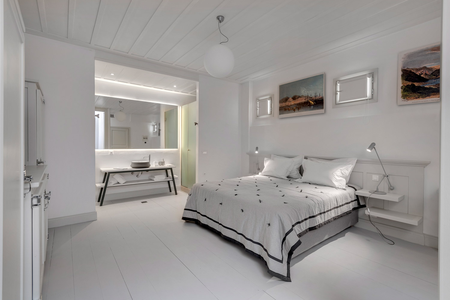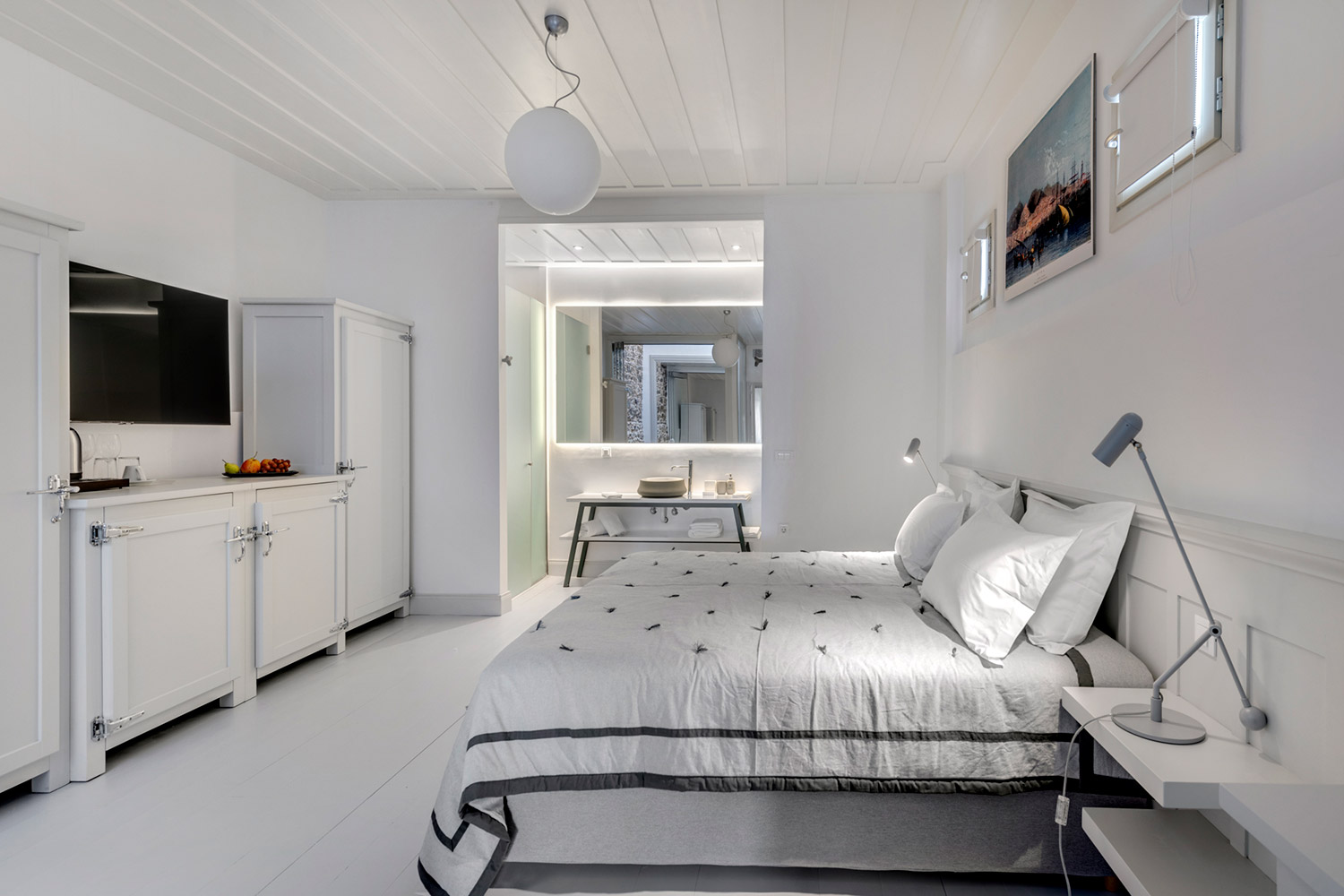 The superior room on the first floor presents a different kind of indulgence with its private jacuzzi, providing a sanctuary of relaxation amidst opulent surroundings. This room delivers an exceptional experience to travellers seeking suites in Syros, Ermoupolis, with added luxury.